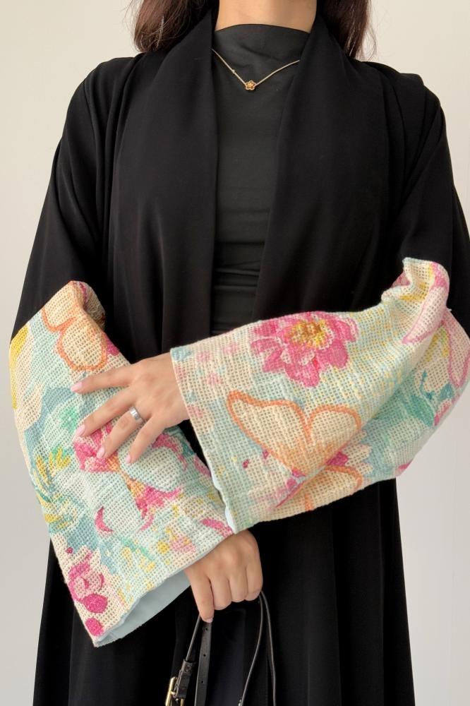 تميزي مع عباية شيك مصممة بأكمام شبك مزينة بالورود، تضيف لمسة أنثوية وأنيقة لإطلالتك، مناسبة لجميع المناسبات الرسمية والخاصة، متوفرة بعدة مقاسات لتمنحك الراحة والأناقة طوال اليوم.