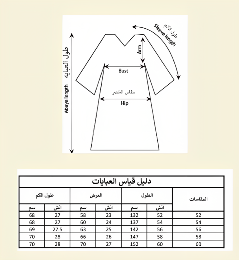 • عبايه قطن متوفرة بعدة مقاسات لتناسب مختلف الأجسام